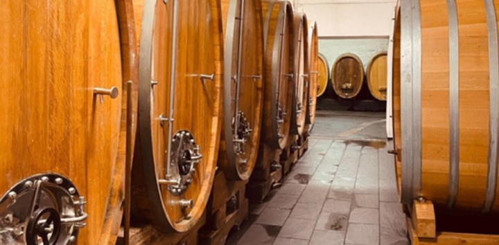 Wine barrels in a cellar